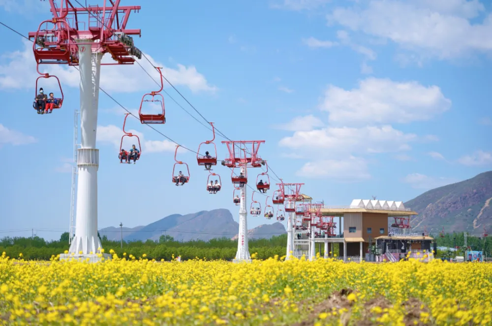 該條索道線路分為1號線路330米、2號線路390米,每小時運量700人,單向運行時間5.5分鐘,該項目建成后顯著提高了游客旅游體驗性、探索性、新鮮性的同時減少碳排放,為山里各莊景區注入新活力。